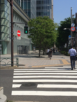 2つ目の横断歩道を渡り左折(松竹スクエアの手前)、